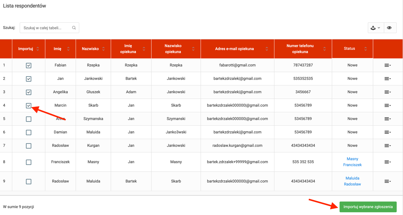 Pokud jste vytvořili nábor, systém Vám umožní vytvořit hráčské a rodičovské účty přiřazené ke konkrétním týmům na základě dat poskytnutých respondenty.
